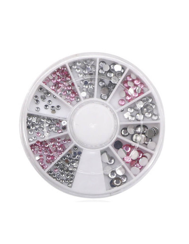 Decorațiuni Strasuri pentru Unghii – Diverse Mărimi, Argintii și Roz