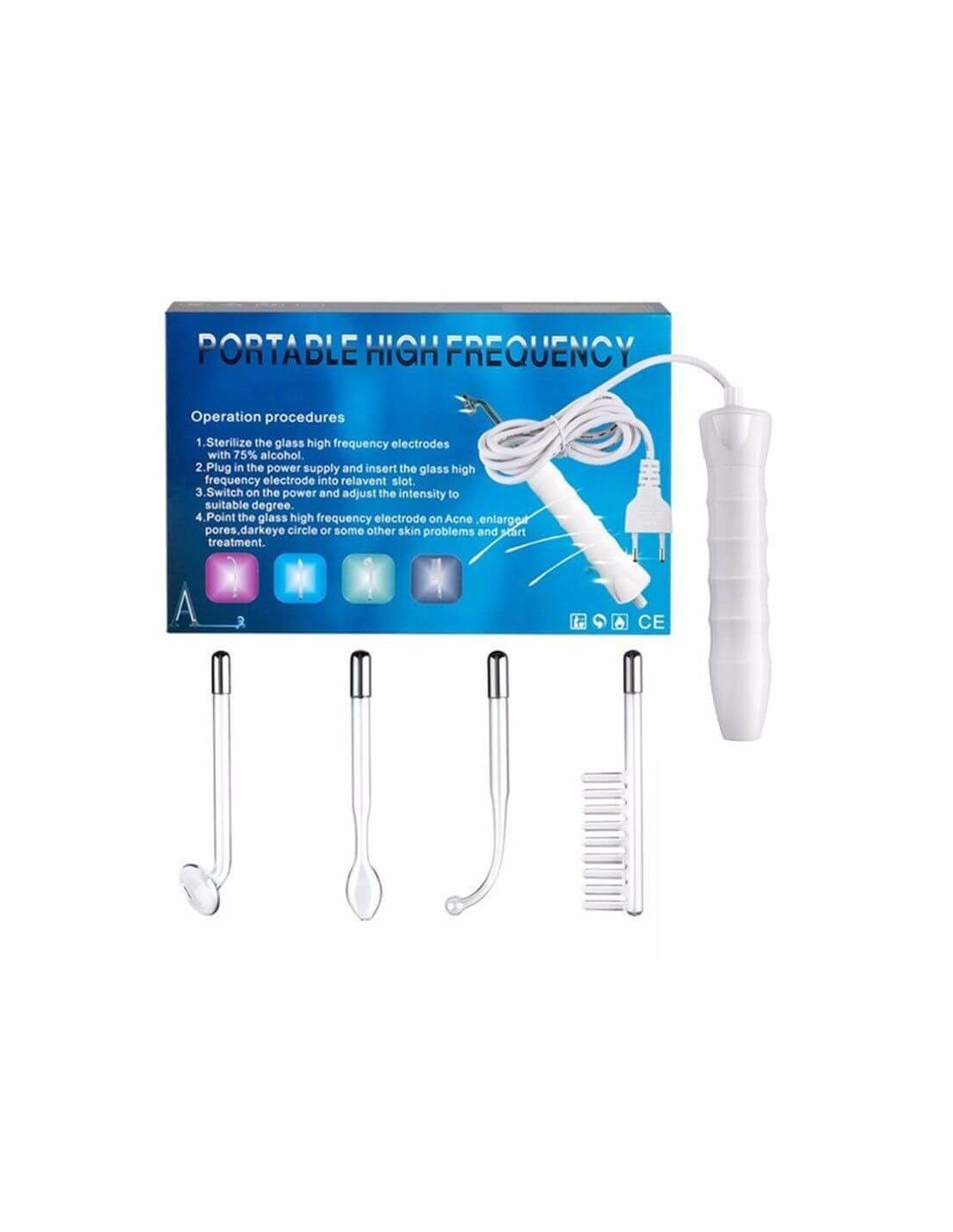 Electroderm Portabil Profesional cu 4 Capete – Aparat de Înalta Frecvență pentru Tratamente Cosmetice