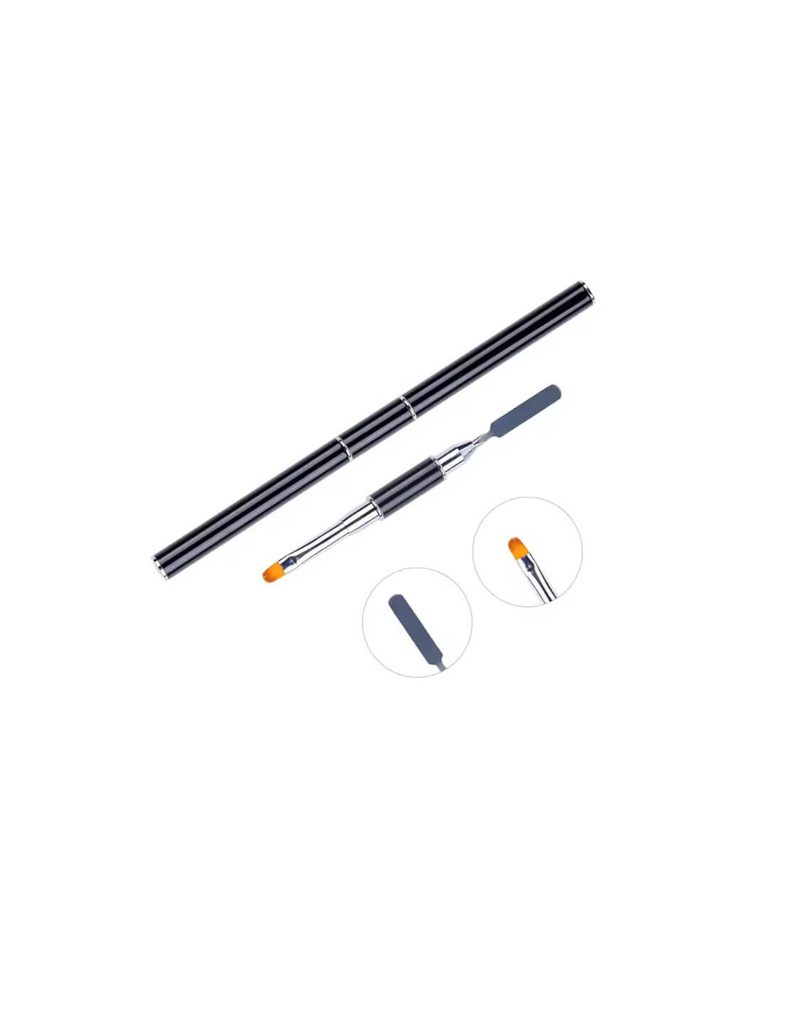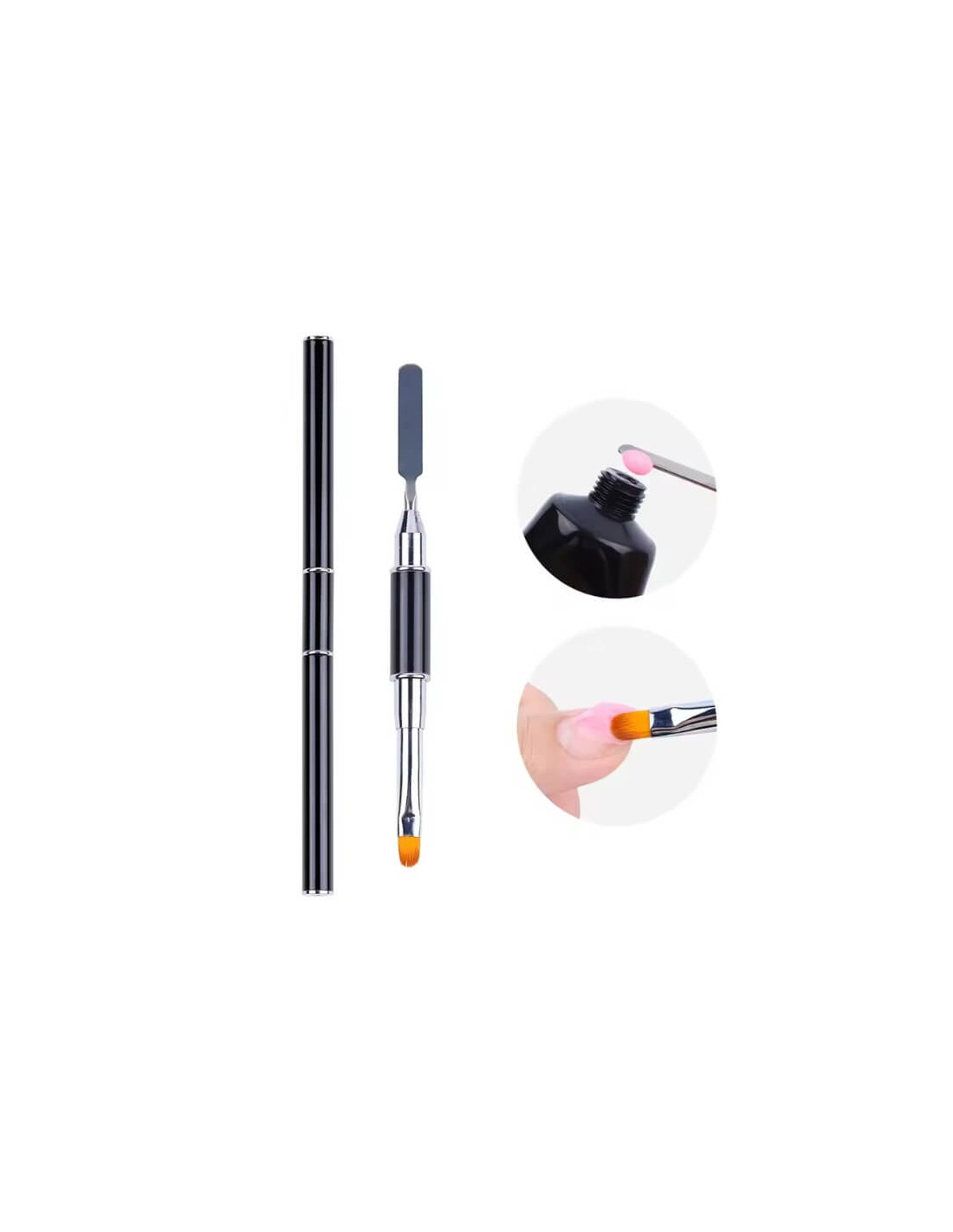 Pensula profesională cu spatulă metalică integrată este instrumentul ideal pentru aplicarea precisă a gelului și polygelului. Cu o lungime de 17 cm, design ergonomic și capace de protecție la ambele capete, acest accesoriu oferă durabilitate și igienă în fiecare utilizare.