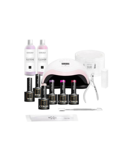 Kit Unghii Ocho Hybrid Start 1 – 13 piese, cu lampă UV/LED și 4 culori vibrante