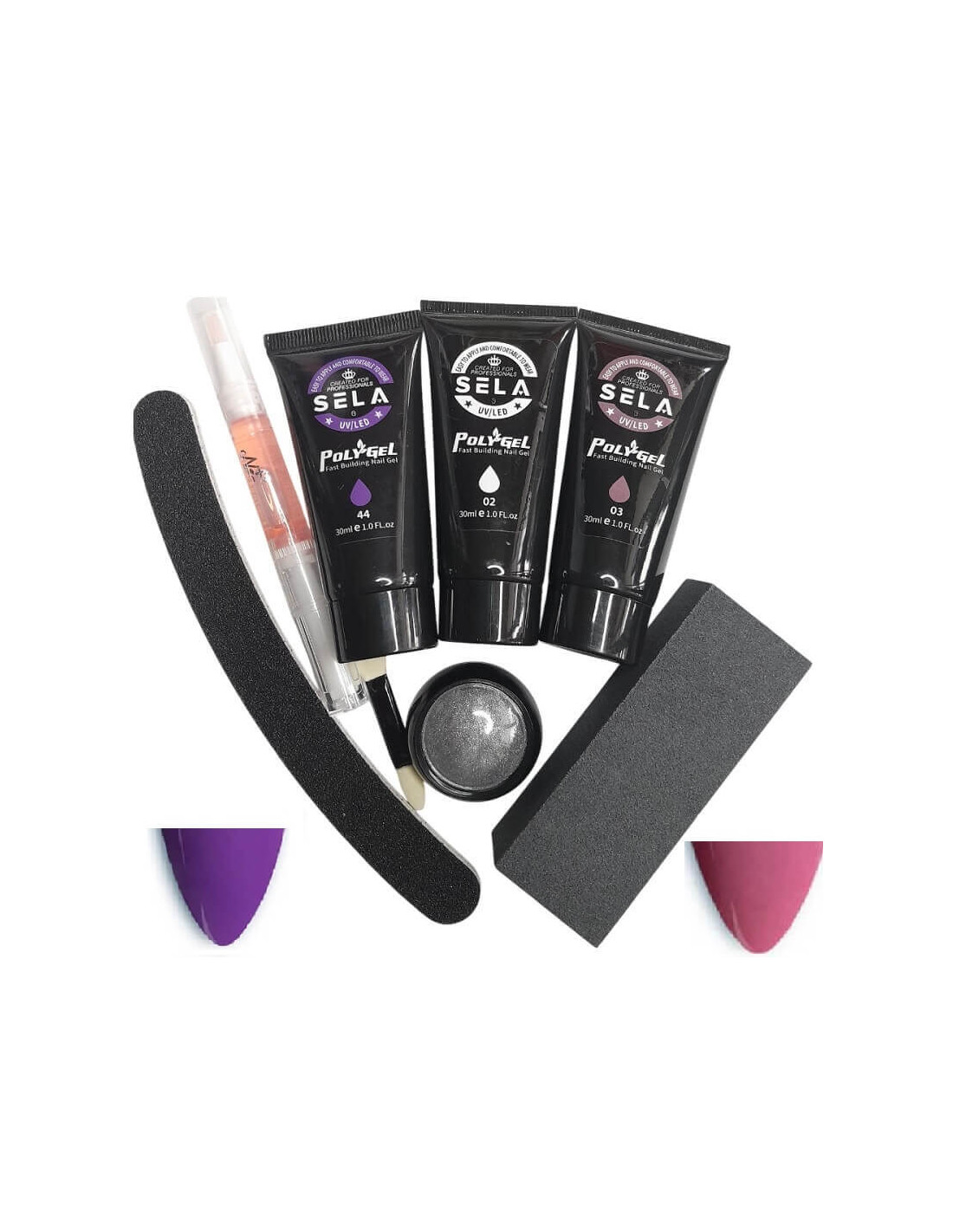 - 3 bucăți polygel x 30ml (nuanțele 02, 03, 44)