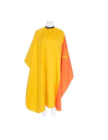 Pelerină de tuns TG – galben cu portocaliu, din fâș, 160×135 cm, închidere cu clips