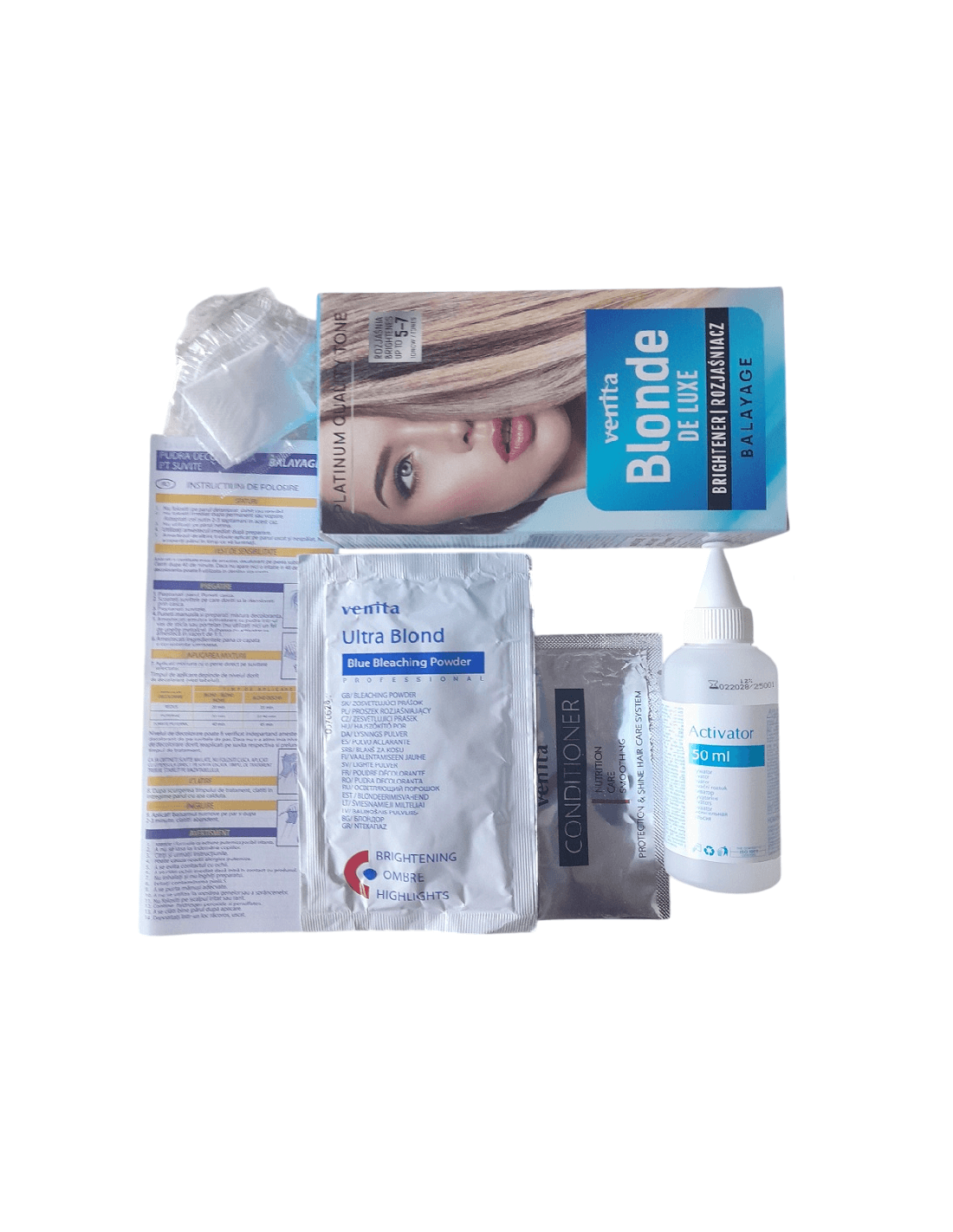 - 50g pudră decolorantă profesională (5–7 tonuri)