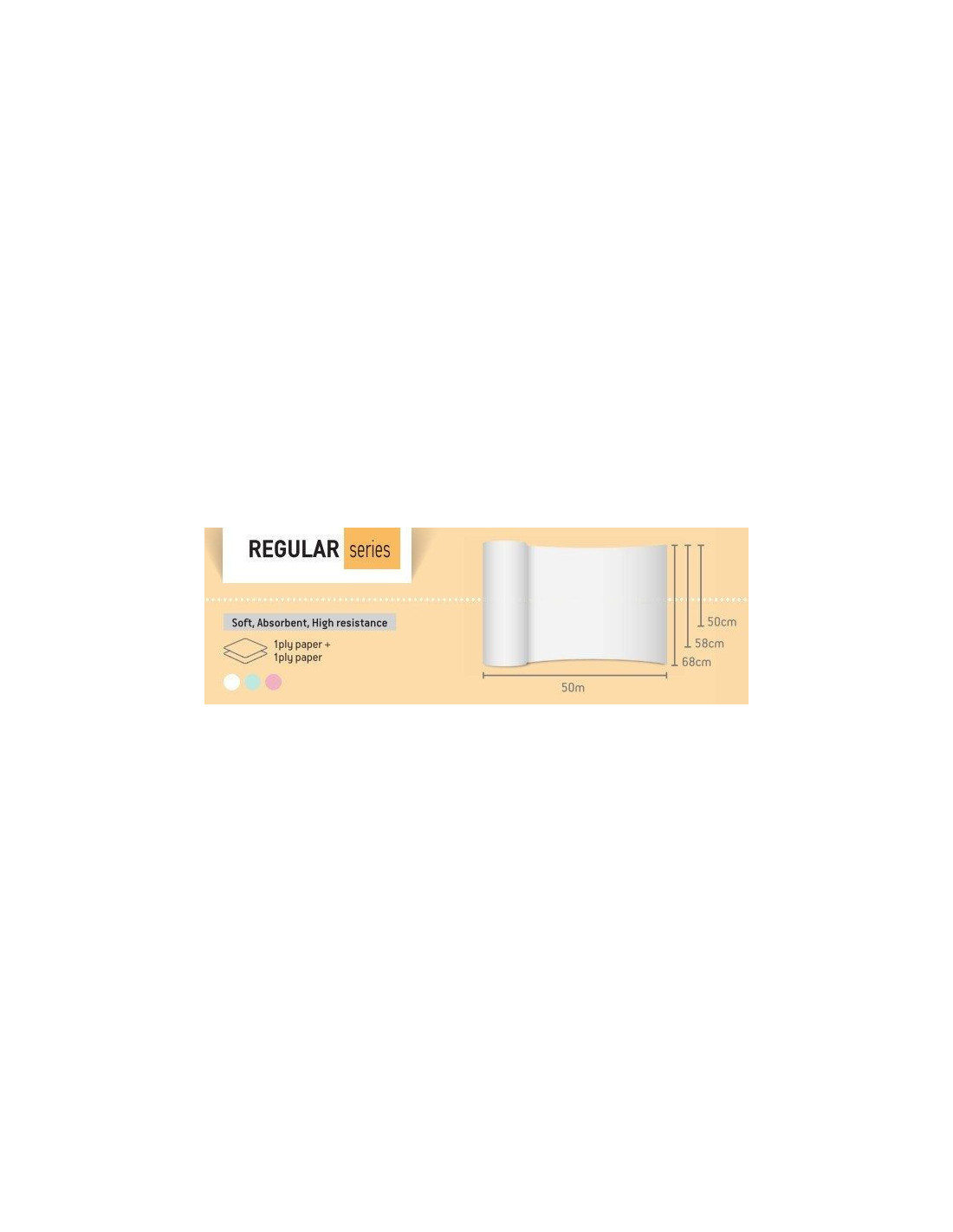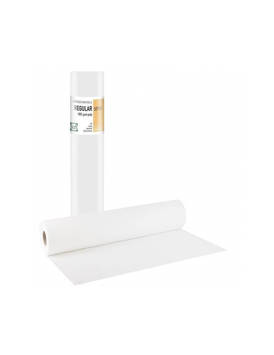 Rola cearșaf hârtie pat 50cm x 50m PREMIUM – 2 straturi, embosată, perforată, producție Grecia