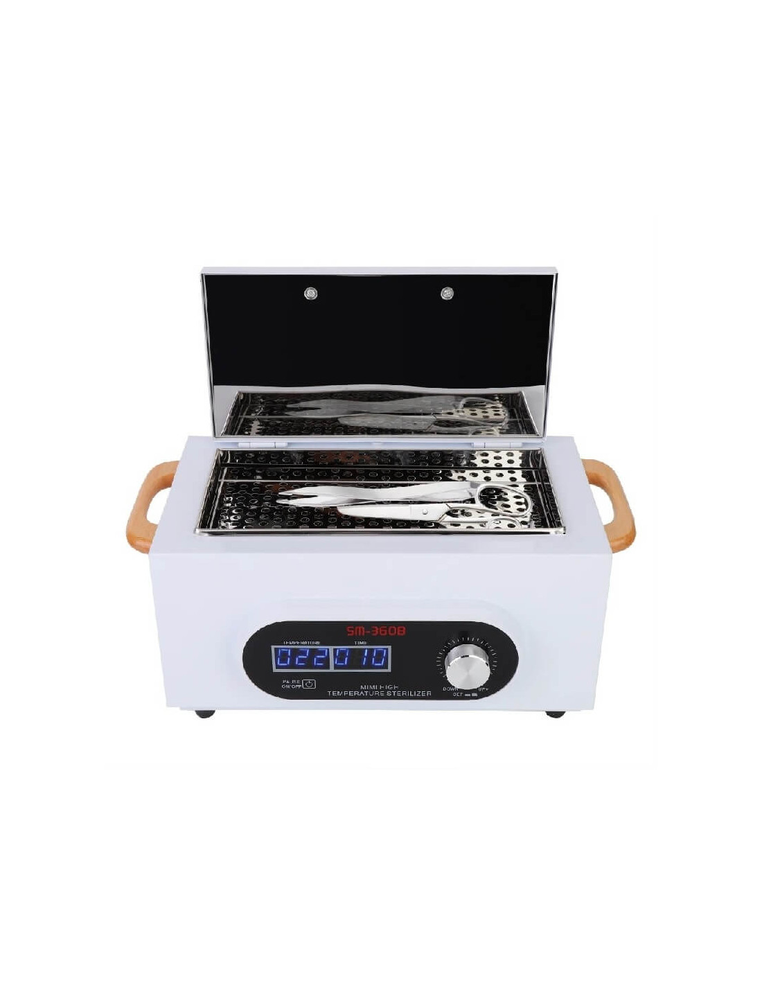 Sterilizatorul Pupinel Mini Digital CH-360B este un aparat practic și eficient, destinat saloanelor de înfrumusețare, cabinetelor cosmetice și chiar cabinetelor medicale. Funcționează prin sterilizare uscată, fără a necesita avizul Ministerului Sănătății, și asigură igienizarea completă a instrumentarului metalic fără deteriorare.
