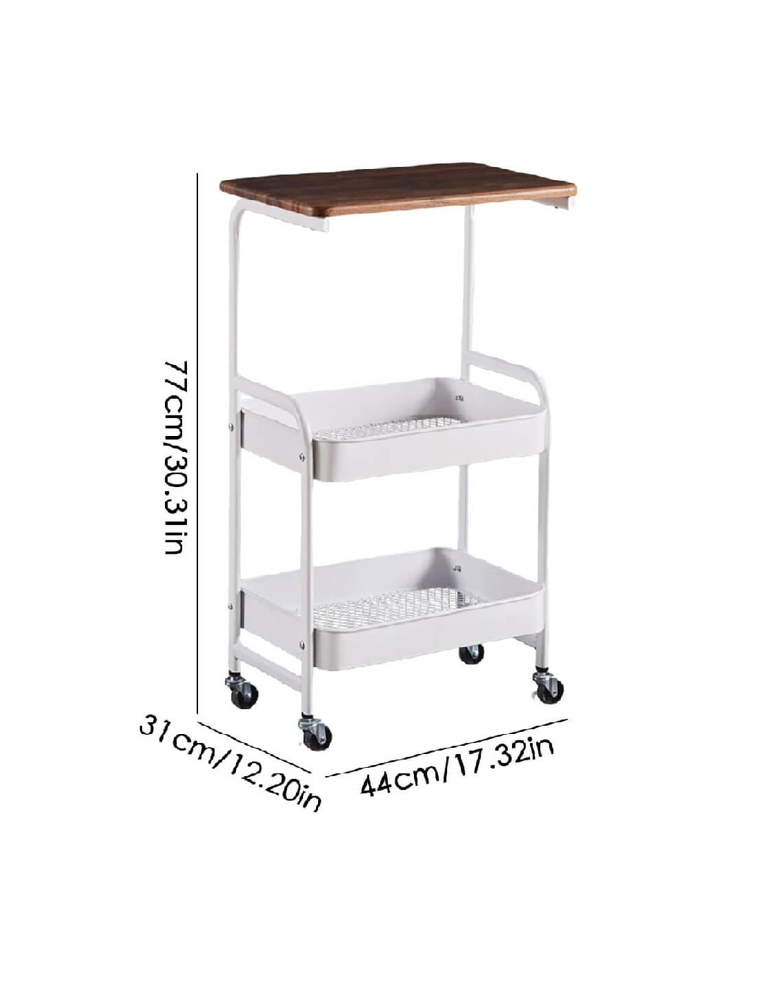 Raft metalic tip măsuță 43×30×77 cm cu blat MDF și 4 roți
