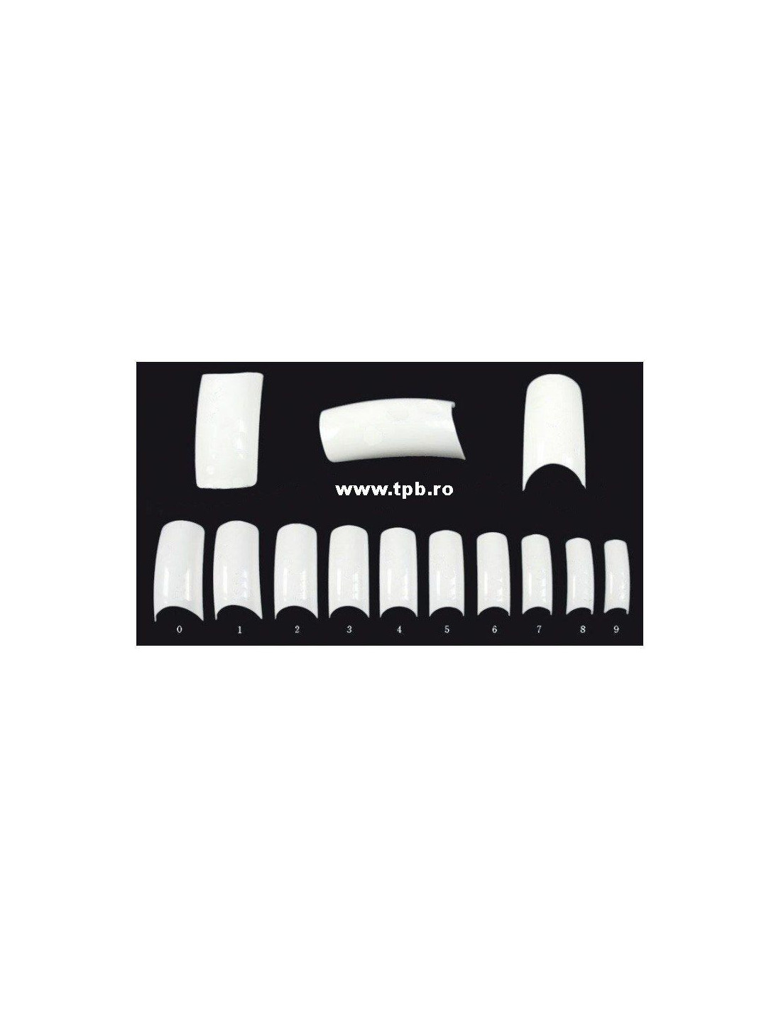 Set tipsuri profesionale French unghii false albe – 10 dimensiuni, 100 bucăți